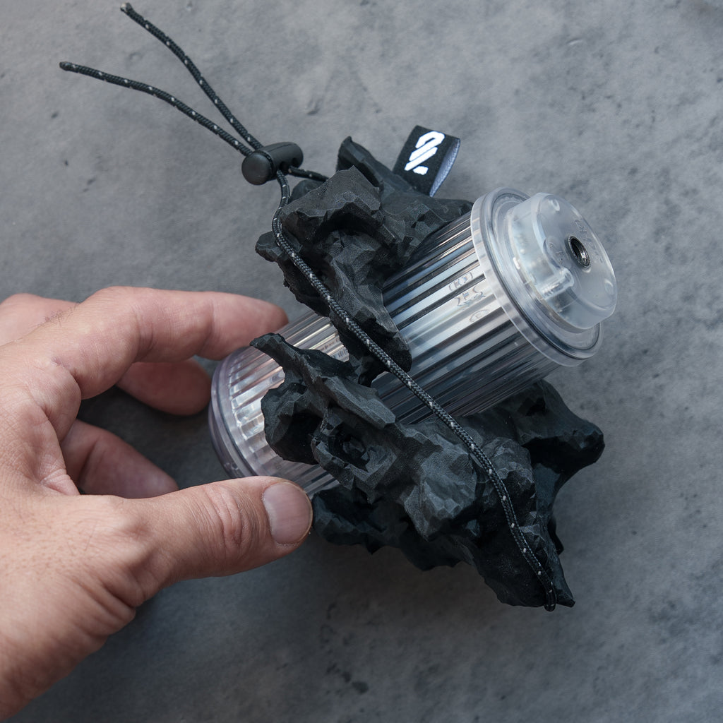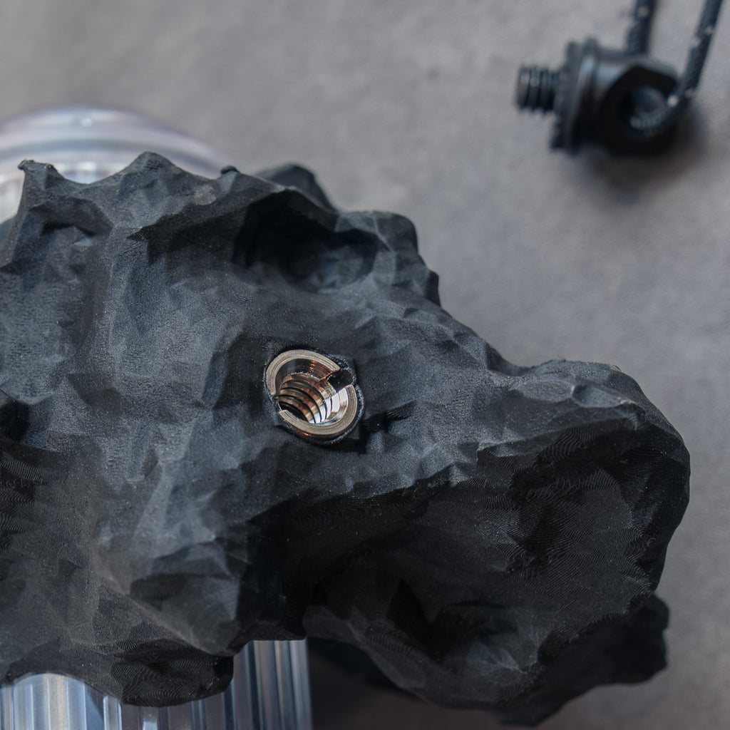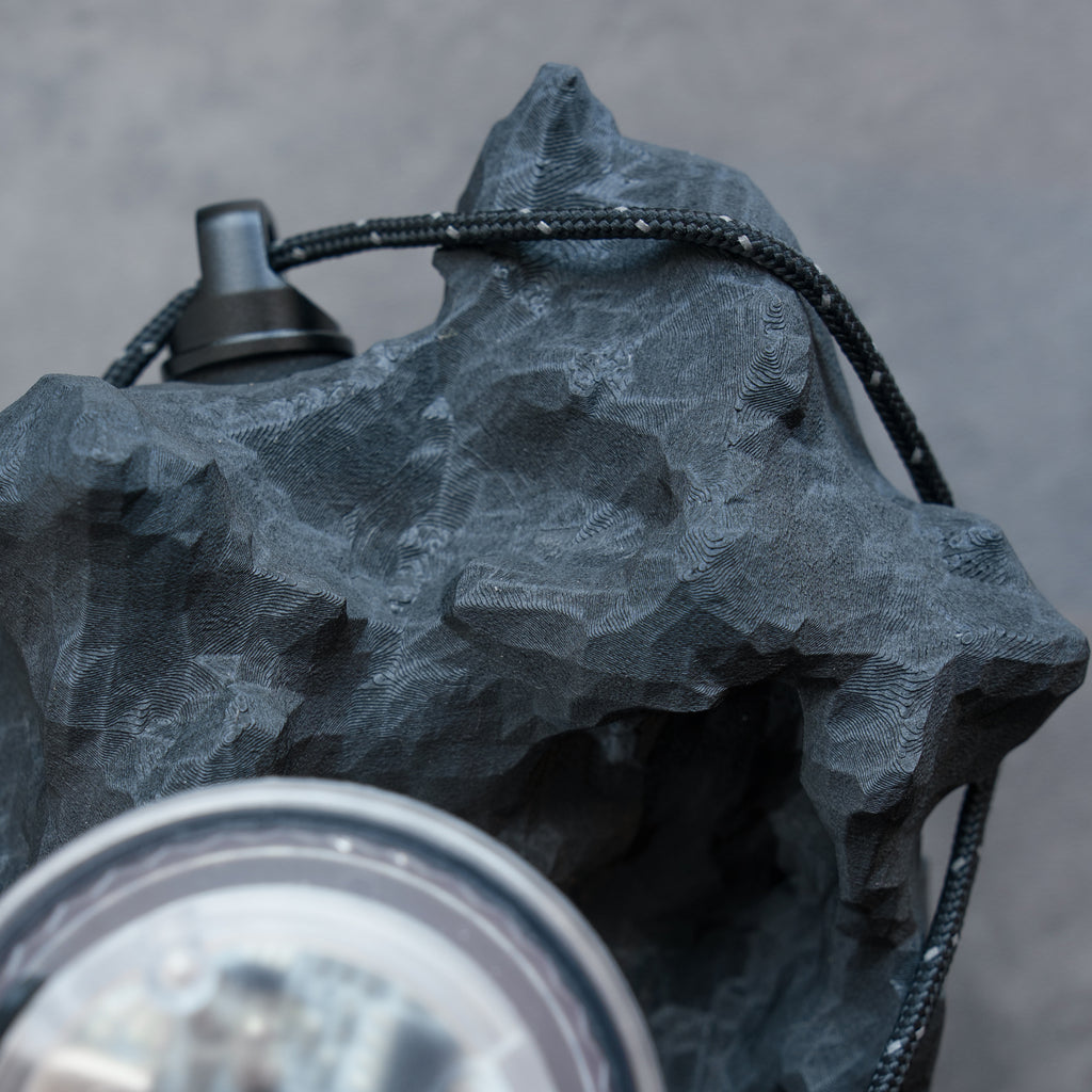岩をモチーフにデジタルテクスチャを施した造形でデザインし、3Dプリンターで一点ずつ丁寧に製作、さらに手作業で仕上げています。