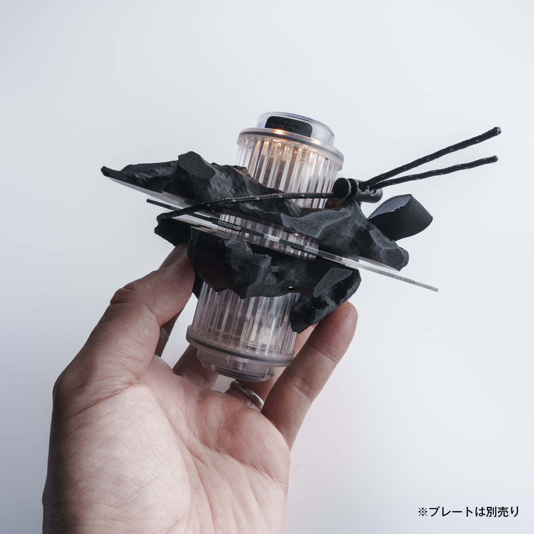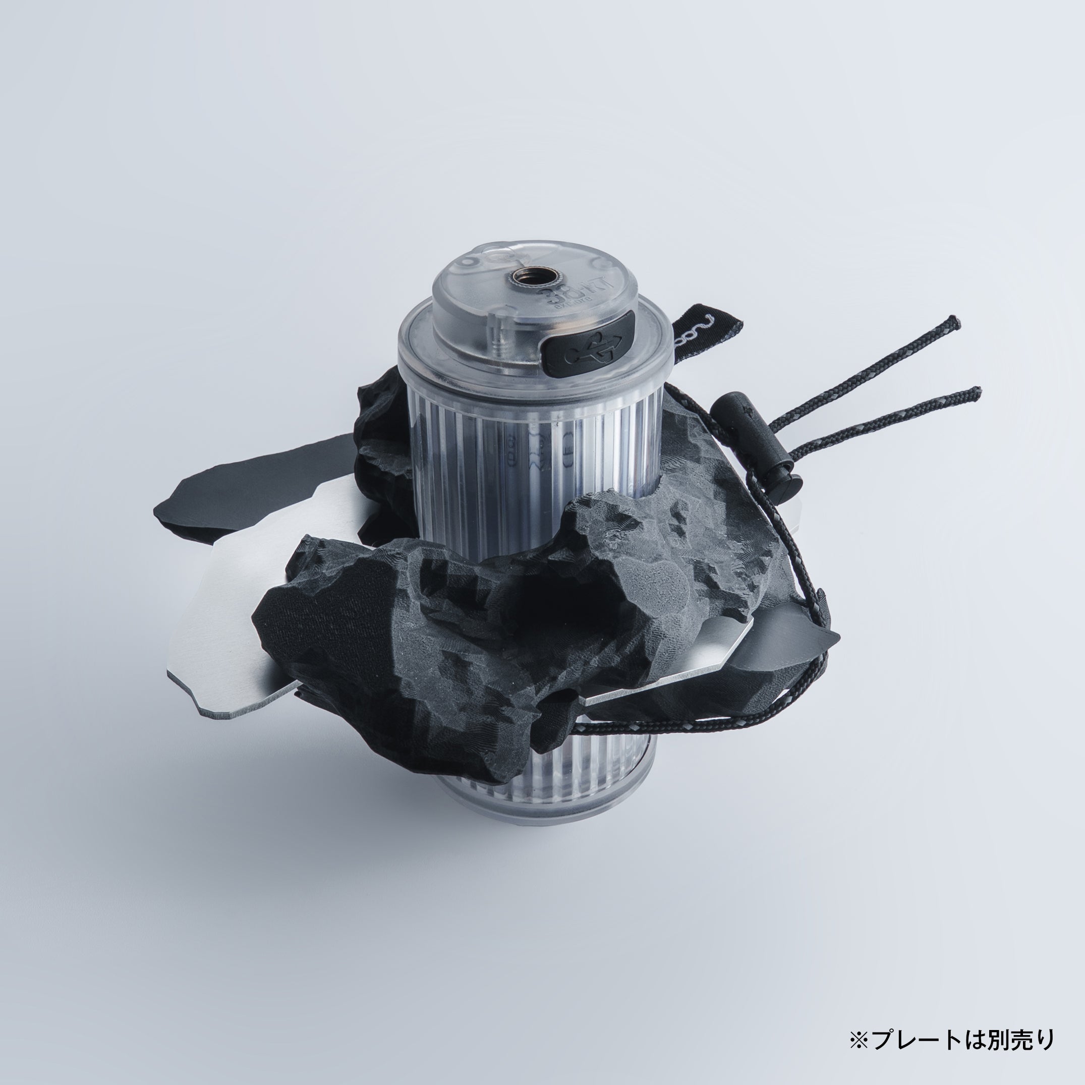本体には1/4カメラネジ対応のマウントを搭載。三脚やカメラアクセサリーとの組み合わせはもちろん、{node2}に巻かれたガイロープを使って吊るすことも可能です。卓上でもハンギングでも、シーンに合わせて自在に灯りを楽しめます。